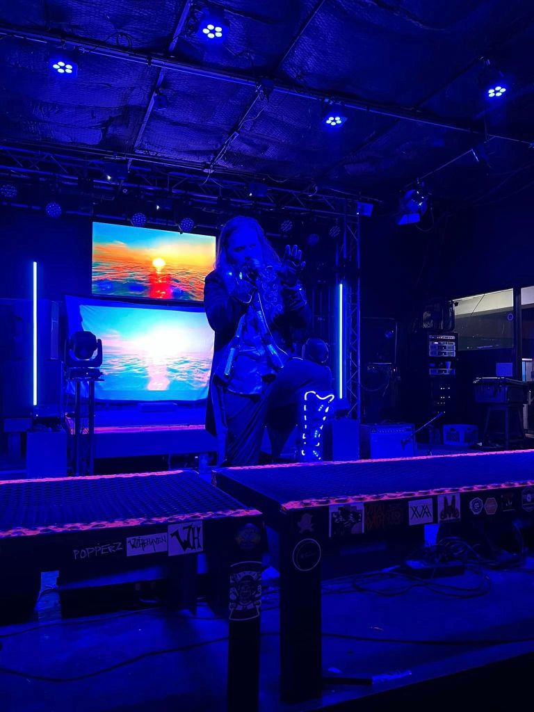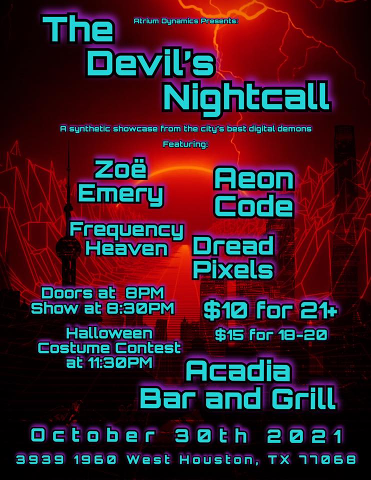 A Synthwave Artist with a 4K video backdrop. Over an hour of content that can fit any stage, large or small. Originals, covers, or both. Call, text, or email for booking info: 832-341-4326 or theAeonCode@gmail.com